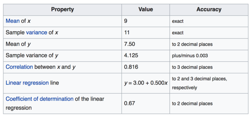 Would the measure of central tendency and disportion be same for this data? I am sure none of us would believe but to our utter surprise we see all the descriptive stats are kind of same. Don’t believe me !!! Please see the results below ( Source: Wikipedia ):